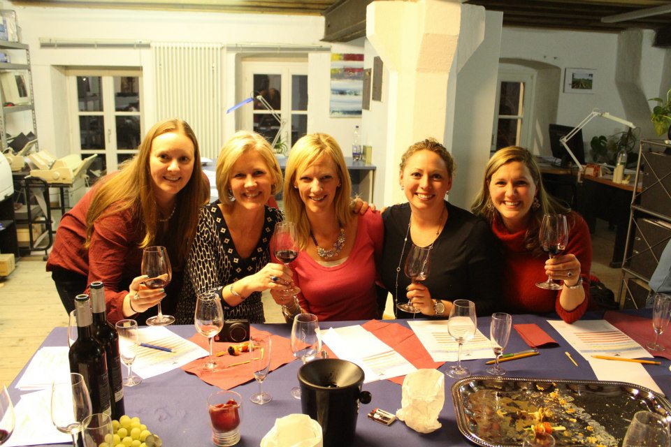 As we say in the Rietkerk house, “We haven’t met a red wine we don’t like.” But, you can’t be considered a true wine aficionado until you have been properly educated. As part of the Hohenfels Wine Club, my goal is to get me some education in a fun and engaging environment. This month’s outing was to Bert’s Wine Express in Regensburg. The evening featured wines from Portugal and was ably hosted by Dominic, a young wine enthusiast. We learned the basics of wine tasting and then tried out our new skills on 8 featured selections. What I most appreciated about the evening was Dominic’s enthusiasm for wine, including his robust excitement at smelling selection #5 and exclaiming, “Yes! Time for a BBQ!” And, I have to admit, the wine recalled for me thoughts of bacon, smokey-ness and outdoor parties. Other smells we tapped into: sour, green apple, oak cask, antique shop, grandma and even yeast. Our wine selections were enhanced with terrific tapas and lively conversation with 20 of my wine friends. We concluded the evening with a small glass of port, that great sweet Portuguese elixir and then hot coffee.