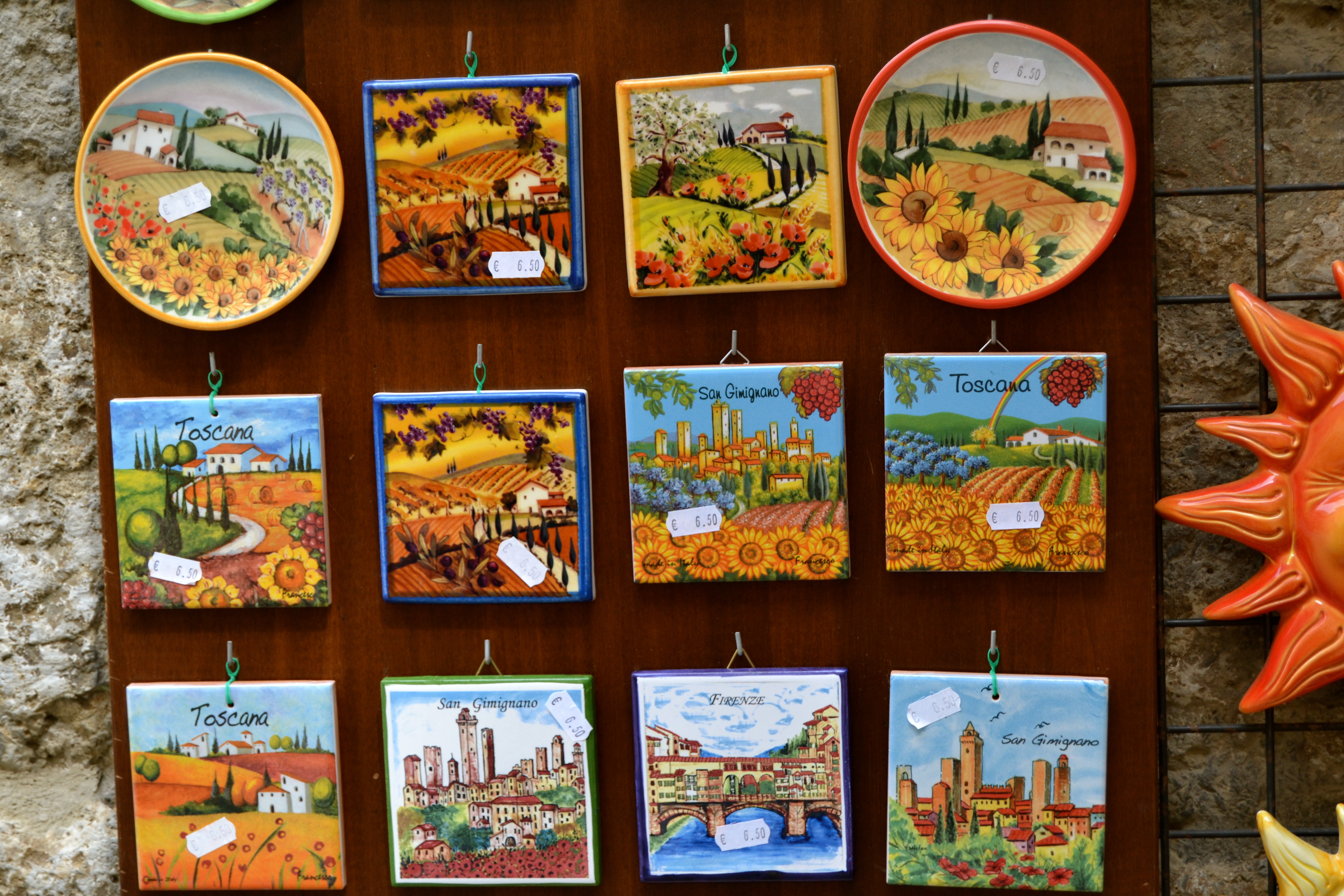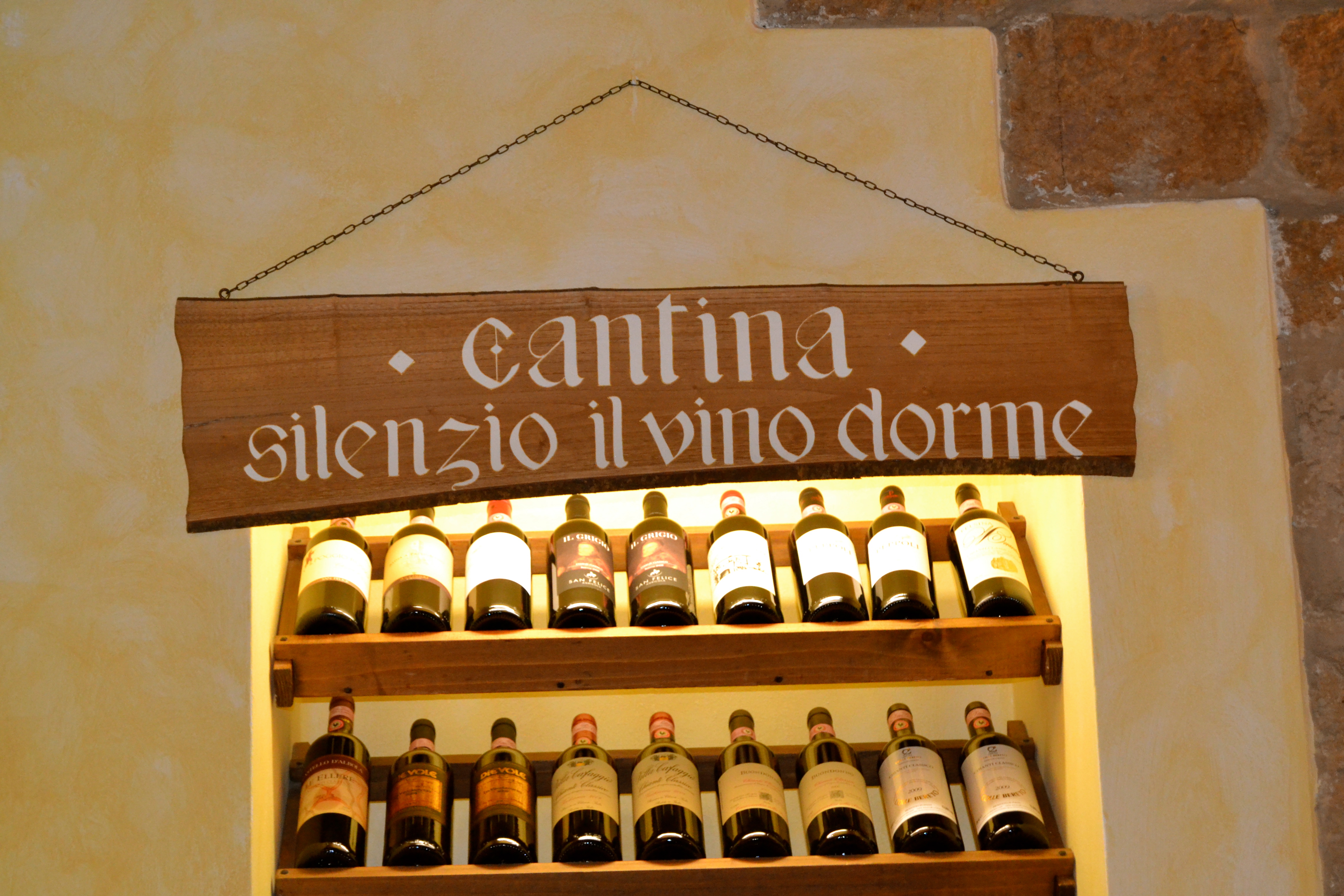 Our next stop was Volterra, a picturesque town that features views of the Mediterranean Sea (on a clear day). More than 2,000 years ago Volterra was a key trading center and one of the most important Etruscan cities. The city still boasts the oldest Etruscan gate (4th C BC!) still standing in the world. Artisans still craft items using alabaster, their stone of choice, and I picked up a cool alabaster wine stopper as a souvenir. For lunch, we ate at a wonderful cantina on a windy side street. it was here that we discovered one of our favorite Italian signs which I have had reproduced by my friend Paige for our ever-growing wine tasting room.