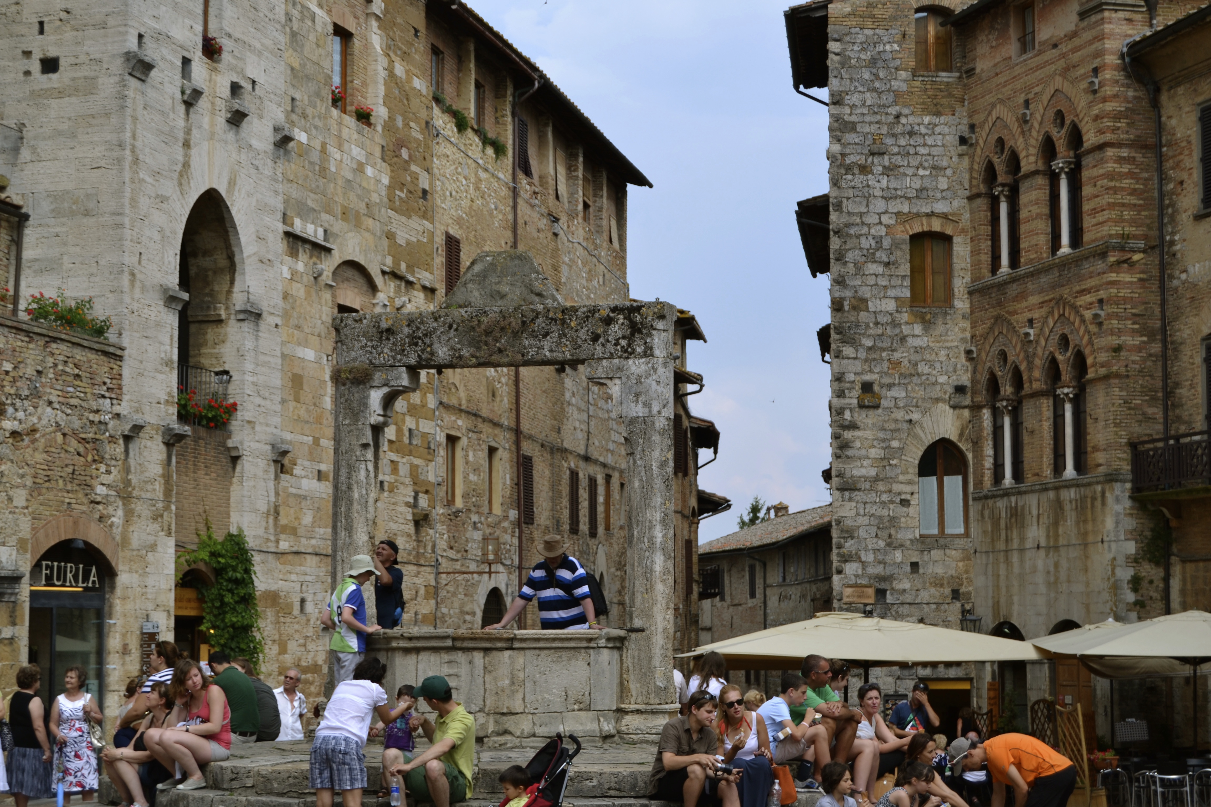 Lastly, we hit up San Gimignano, a walled city with 14 towers still standing! History tells us that each tower was owned by noble families who would battle each other from their towers. It’s quite a sight as you drive in the from the country with the towers like little skyscrapers in a medieval metropolis. There was a bit of Veronese flavor in this city, with a very old well still drawing water from the main piazza.