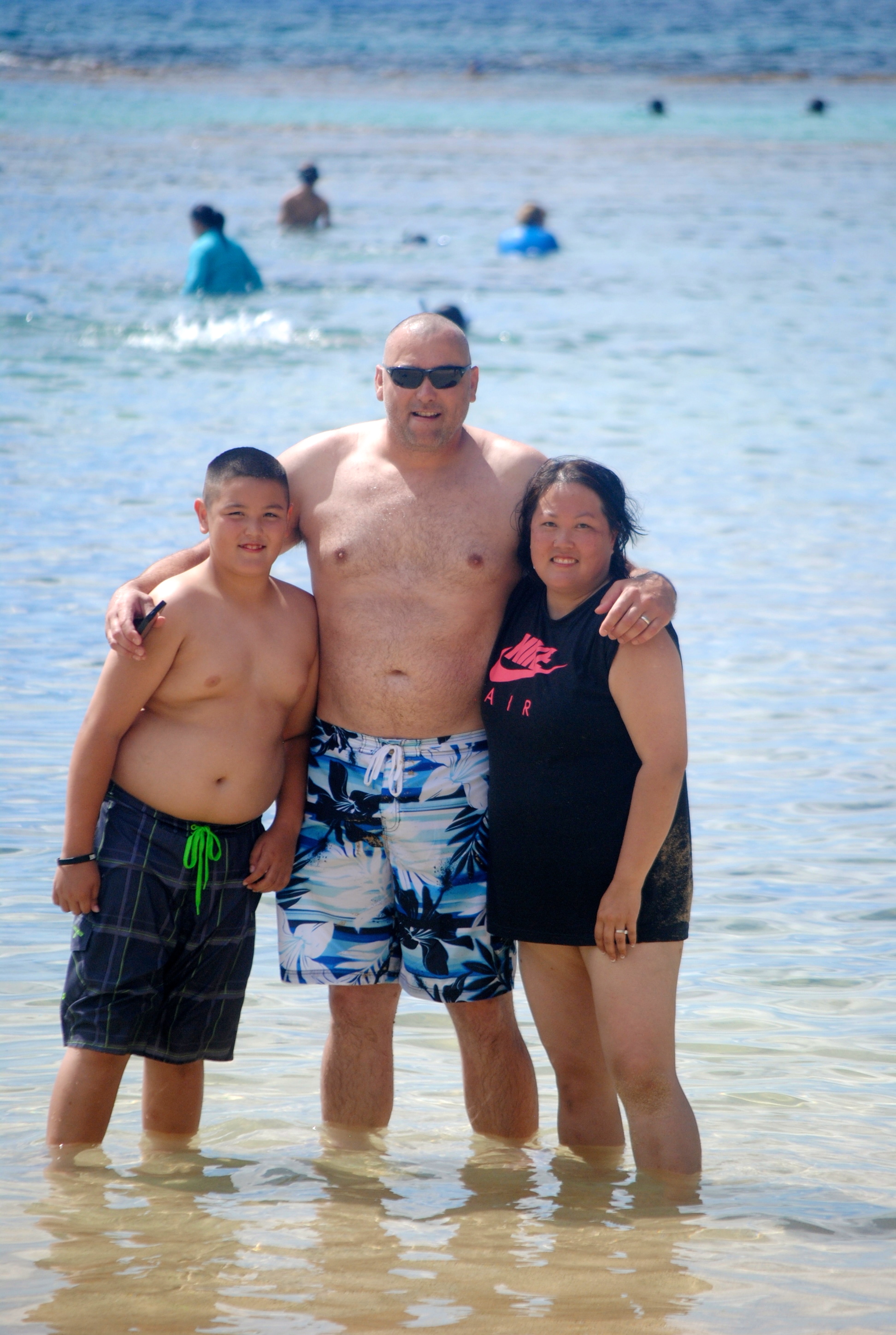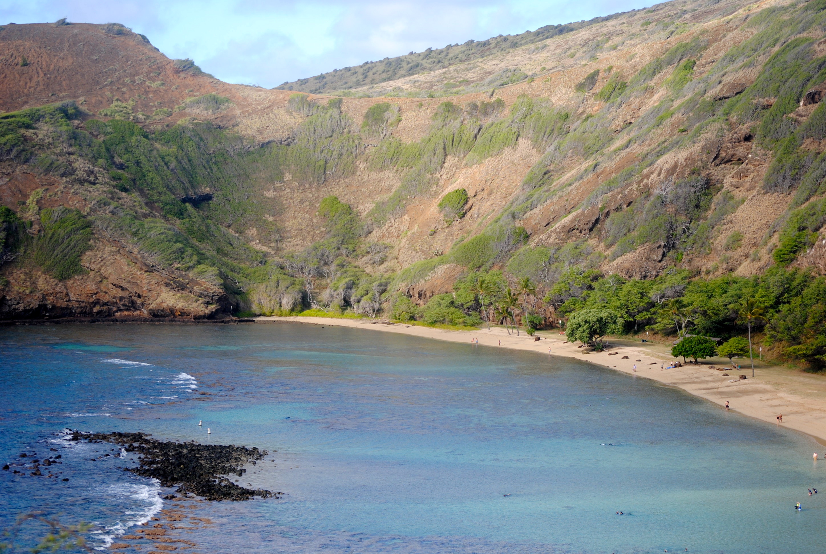 Tim’s mom stayed true to her word. She promised that this trip had no agenda, there was no mandatory family photo op, no scheduled luau with matching Hilo Hattie outfits, and absolutely no assigned cooking and cleaning schedule. But what she did ask was something everyone eagerly looked forward to: Hanauma Bay! I’m not going to do the story justice but what I recall is that the bay holds special memories for Mom and Dad and it has something to do with their time in Hawaii when Dad was in a wheelchair, Mom was pregnant with Jill and “the boys” were super naughty. Dad made arrangements with Snorkel Bob’s to rent enter enough gear for the whole crew and we arrived at the bay well before 9am…which was good, because even at that time the parking lot was getting pretty full. After paying our entry fee and then viewing the obligatory safety video (which convinced Lilly that blowfish will cause excruciating pain just by looking at them) we made the long trek down the path to a relatively quiet spot on the sand. It took us a good 20 minutes to get masks and fins on and then another 10 minutes to figure out the buddy system. “I don’t think having Will in charge of Lilly is a good idea out in the ocean. Neither one wants the other to really live, and that poses a problem.”