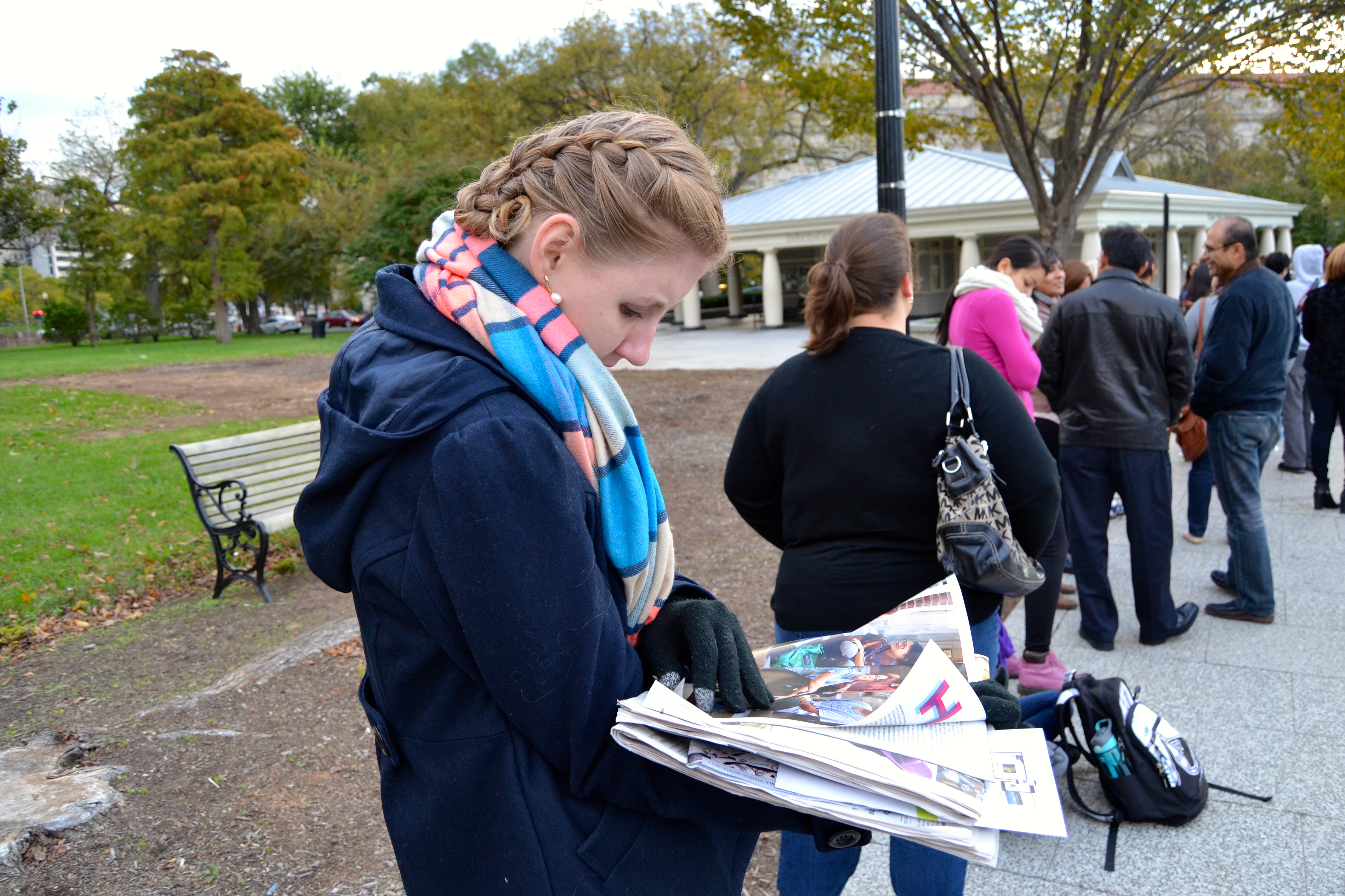 I was convinced that a weekend as good as ours was going to be a wash out come Sunday. I swore to Lindsey I heard rain pelting the windows during the night. When we opened the blinds all we spied was another gorgeous day. Off we went in search of donuts, coffee and The New York Times–all to keep us occupied as we waited for tickets for the White House Fall Garden Tour. We waited about an hour and with tickets in hand, we lined up with our new best friends for a chance to make our way across the South Lawn. I don’t think a better day could have been in store for viewing the grounds.