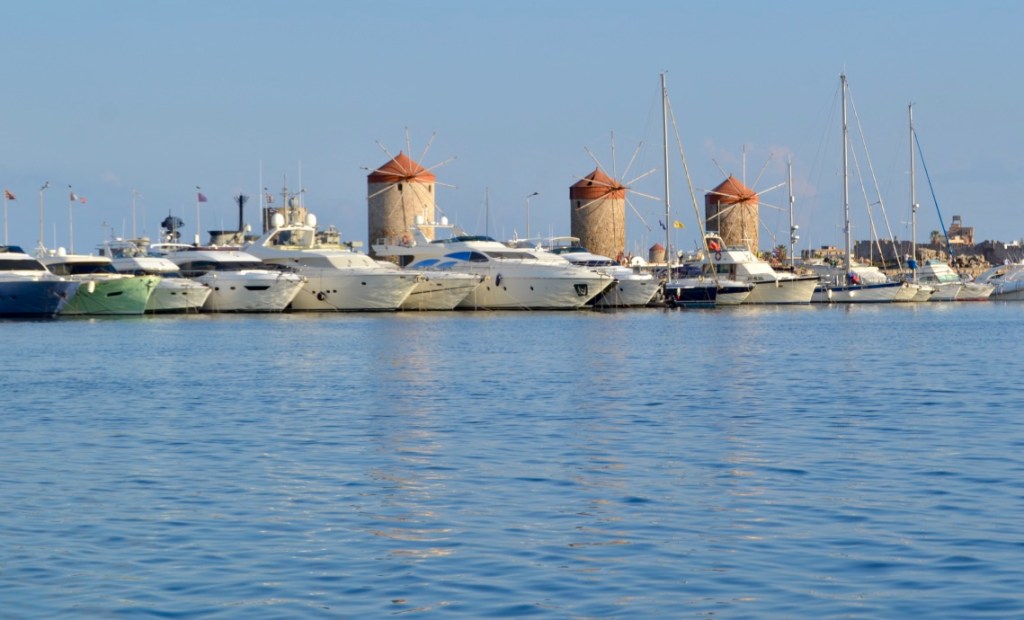 The Colossus of Rhodes, one of the seven wonders of the ancient world, was a large bronze statue that straddled the port. This column marks where one foot of the statue would have stood.