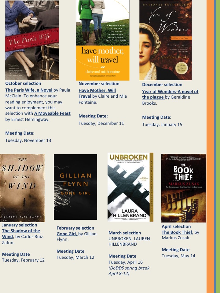 Like many people around the world, I find it enjoyable to read with friends. Following are the books selected for the Hohenfels Germany Book Club. It was a collective effort to choose these titles and each one reflects the unique perspective of the gal who recommended it.