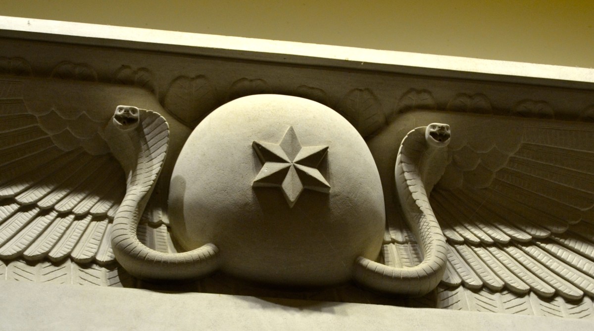 Serpents guard the elevator entry