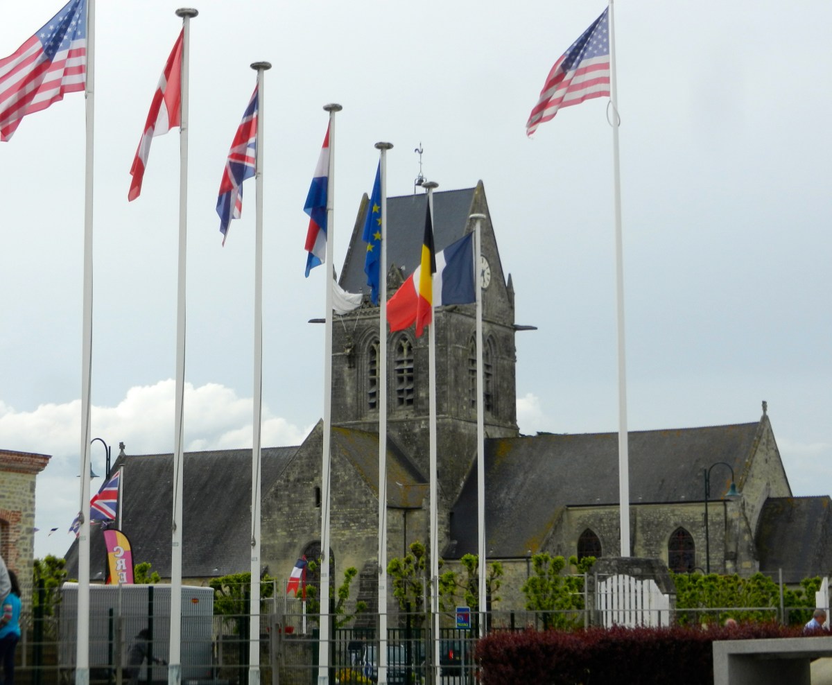 View of the famous church in st mere Eglise