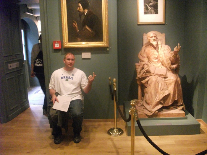 strike a pose…Tim learns from the master Published February 18, 2014 at 700 × 525 Tim strikes a pose at the Reformation Museum