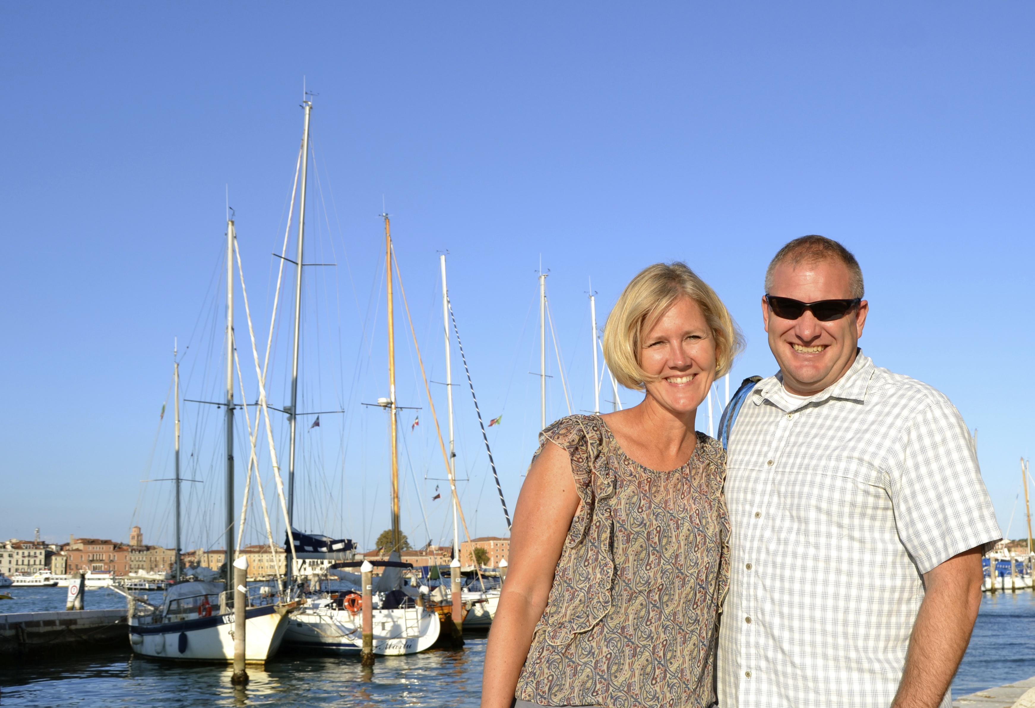 To close out the day, we had dinner at a Trattoria recommended in the Rick Steves’ book. Our prior experience with these restaurant recommendations hasn’t been stellar, but because it was such a tourist-light day in Venice, we thought it might be easy to score a table. We showed up right when the restaurant opened for dinner and after 20 college kids were seated at a long banquet table, we were ushered to a quiet table in the garden. It was one of the best Italian meals I’ve enjoyed and I have to say it was primarily because of the setting. Little white lights twinkled above us and the scent of lilies blanketed the moist air…the table wine was good and my lasagne bolognese was divine. Of course,we wanted the experience to last a bit longer so we ordered dessert (profiteroles and tiramisu) and cappuccinos. What a way to close out a perfect Venice day.