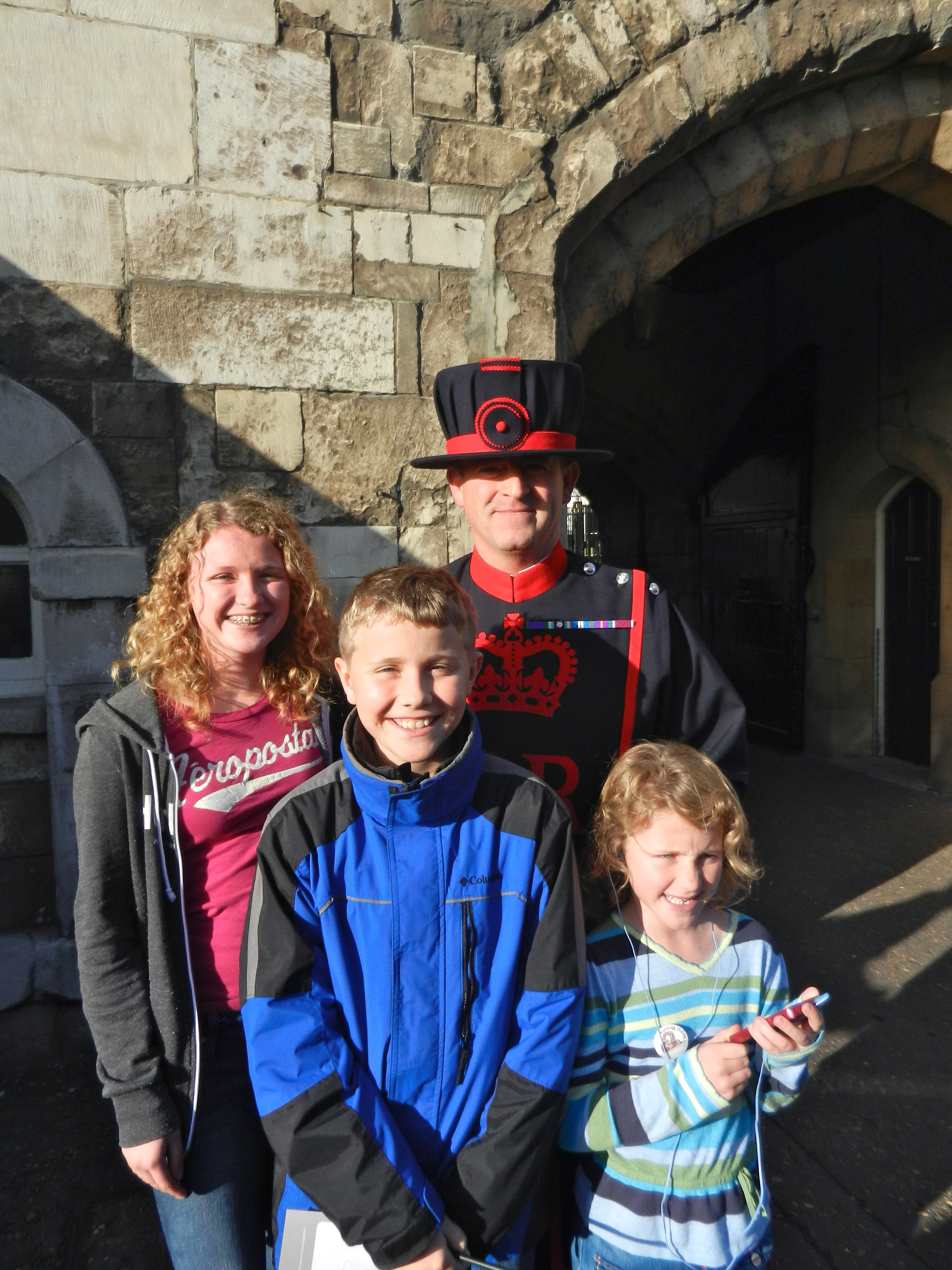 The kids pose with their favorite beefeater, Tower of London